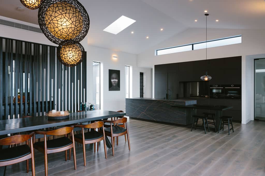 Nestled in the picturesque landscape just south of Auckland, in the charming locale of Whitford, stands a new build that embodies the epitome of sophistication and elegance. This project, set against a backdrop of breathtaking views, was conceptualised to exude a dark, smoky ambiance that is both luxurious and inviting.