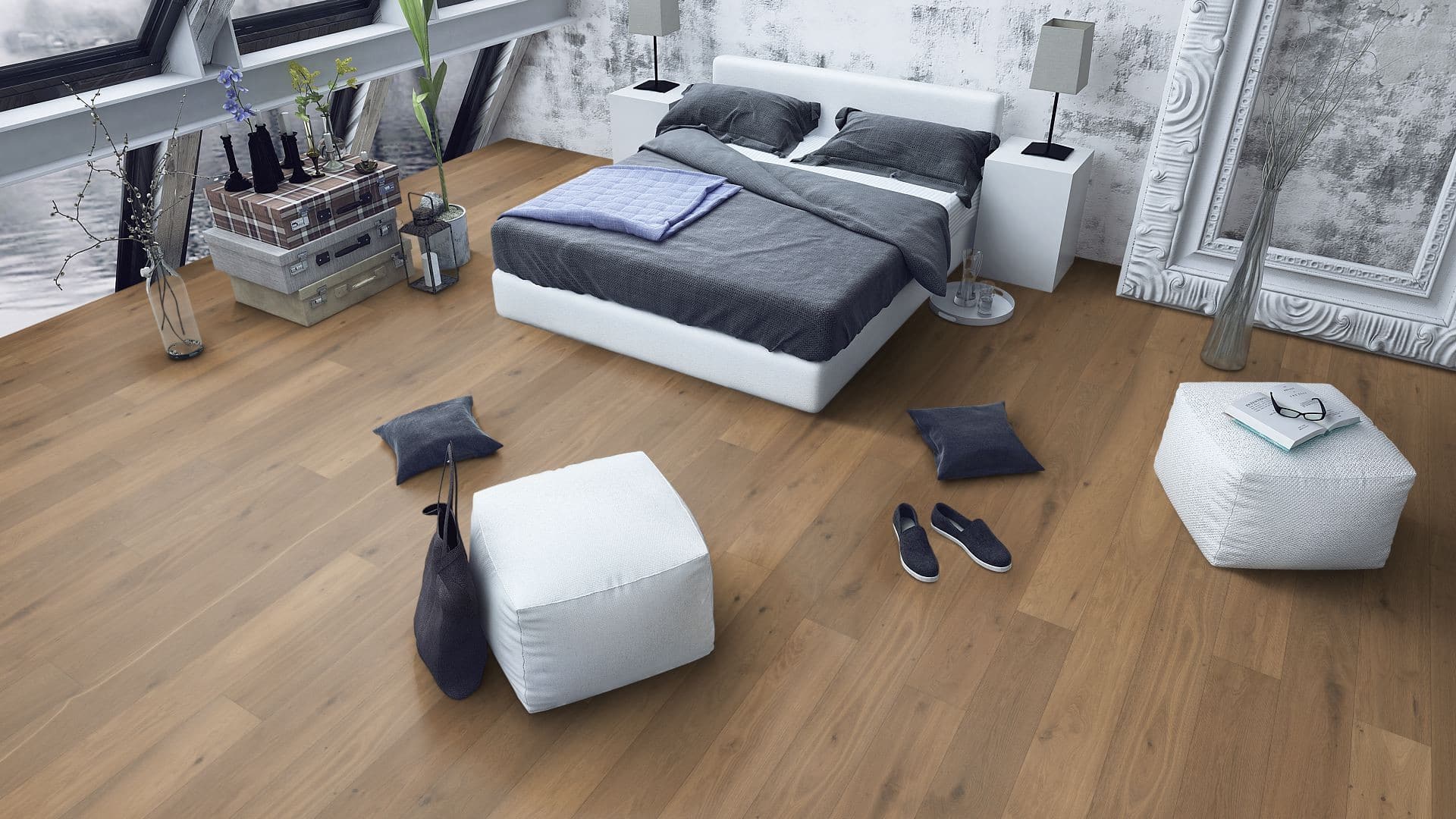 The very subtle micro-bevelled edge defines each individual floorboard and generous fixed board lengths of 2.4 metres bring a noble ambience to the interior. Refined and fortified with a natural oil finish.