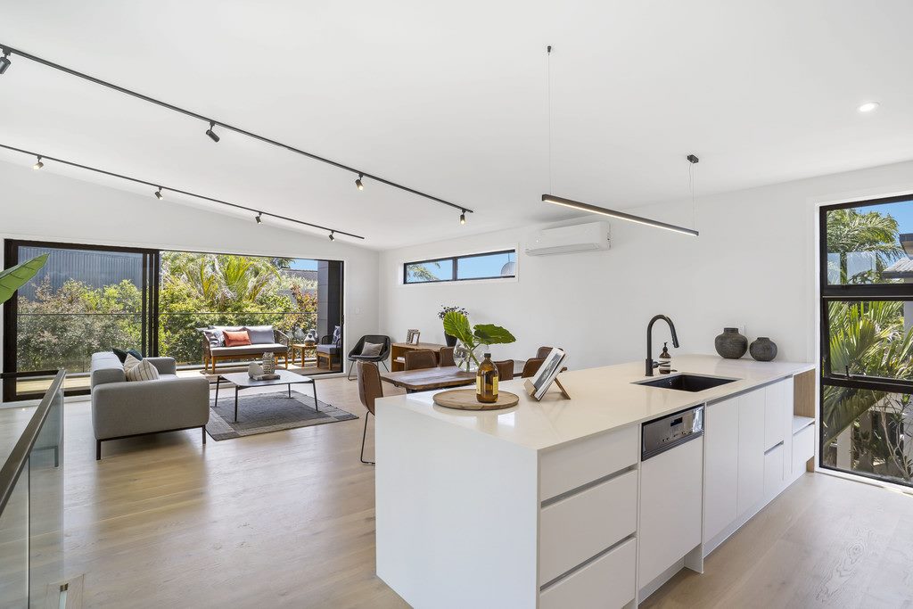 The blended natural and slightly blond tones of Oak Supernatural wide boards feature throughout this new townhouse in Orakei. Flooded with sunlight and complemented by crisp contemporary interiors the open-plan layout is focused on living and beckons entertaining.